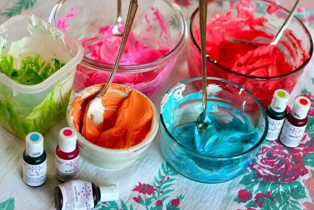 Если вы хотите использовать пищевые красители, необходимо разделить массу на части и только затем добавить красители. Если вы пользуетесь жидкими красителями, то вам придется добавить еще немного сахарной пудры.