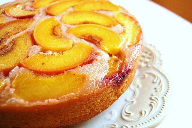 Тесто выложить в форму 20 см (лучше разъемную), сверху выложить персики, не вдавливая. Посыпать крошкой штрейзеля. Печь персиковый пирог при температуре 180 градусов 30-40 минут, смотрите по своей духовке. Готовность проверять спичкой. Готовый пирог остудить, достать из формы.Теперь можно нарезать на кусочки и пить чай или кофе. Персиковый пирог, приготовленный по этому рецепту, получается очень вкусным!