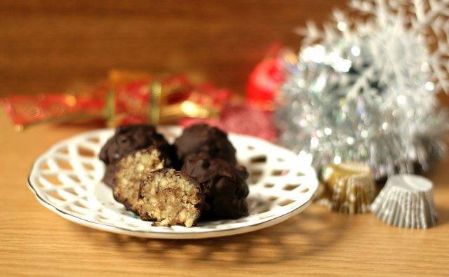 Растопите шоколад на водяной бане. Покройте каждый шарик глазурью. Уберите в холодильник на несколько часов.
