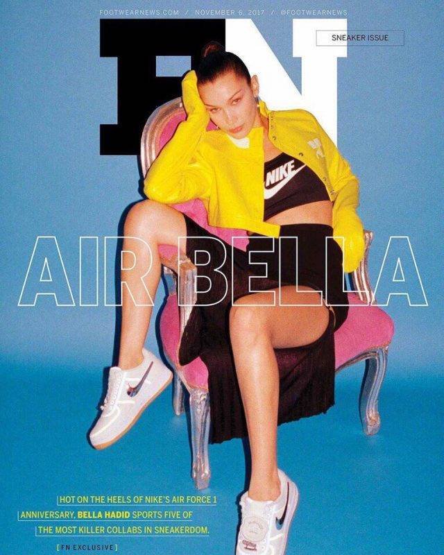 Для фотосессии Белла выбрала кроссовки Nike’s The Air Force 1 capsule collection: