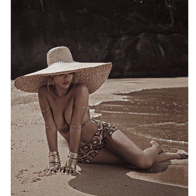 Рианне не нужно особо стараться чтобы выглядеть гламурно. Ей даже не нужно одевать футболку для этого.