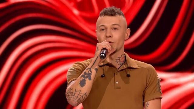 Михайло виступив у фіналі з піснею “Невідомий герой”. Саме з цією авторською піснею переможець проєкту на “сліпих прослуховуваннях” розвернув одразу чотири тренерських крісла.
