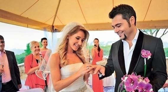 Что касается Испании, то здесь они отмечали в большой 3-ярусной каталонской усадьбе. Сама церемония бракосочетания прошла на мраморном балконе, с которого открывается прекрасный вид на море. Скрипичный квартет развлекал гостей. Пара пригласила всего 12 человек, это были самые близкие друзья и родственники.