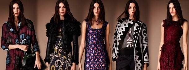 Burberry собрал элементы коллекции с разных эпох и мастеров. Поэтому, в коллекции pre-fall 2014, можно встретить текстурированные жакеты, парче и бархат. Так же, в коллекции присутствуют вышивка, аппликации, блестящие узоры, кружева. Простые платья дополняют кружева, детали и принты.