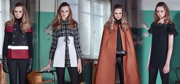 Данный модный бренд, в отличии от яркой летней коллекции, в этот раз представил нам классическую коллекцию в духе 60-х годов. Здесь мы видим: силуэты-трапеции, достаточно объемные формы, жокейские котелки и достаточно короткие платья, юбки и пальто.