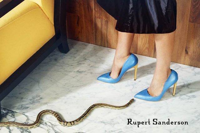 Как мы знаем, каблуки опасны для любой женщины. Для того, чтобы это показать, Руперт Сандерсон решил сделать рекламную компанию обуви, в которой главными моделями выступили змеи.