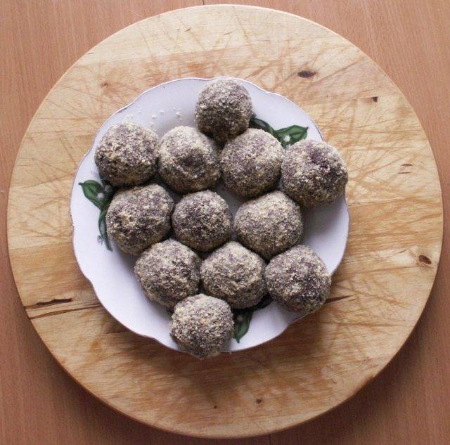 Для приготовления 12-ти порций возьмите: – 75 грамм грецких орехов; – 75 грамм изюма; – 10 грамм ванильного сахара; –