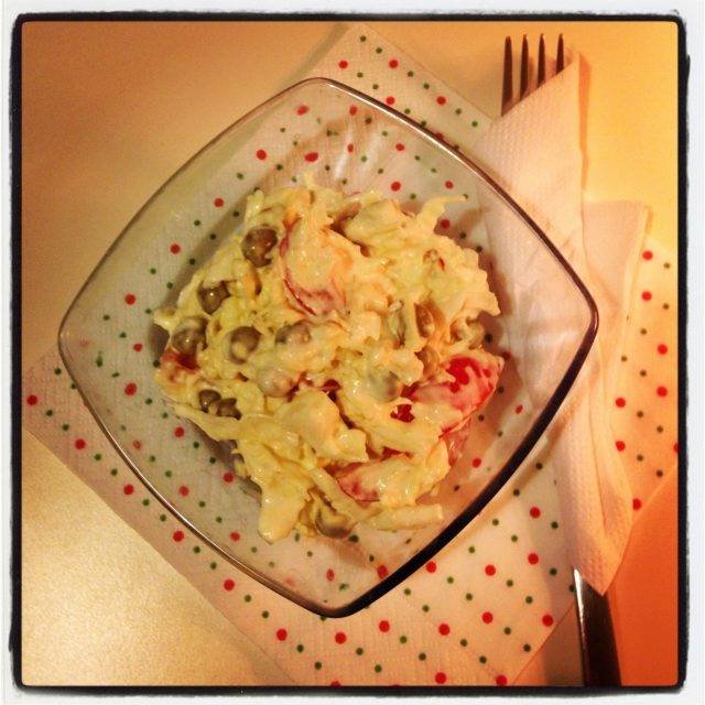 Для приготовления 2-х порций возьмите: – 100 грамм сыра гауда; – 100 грамм белокочанной капусты; – майонез по вкусу; –